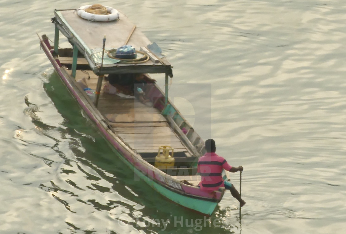 A Man And His Son Out On Their Little Fishing Boat In The Harbour Area Of Sandakan, Borneo, Malaysia Taken In September 2019